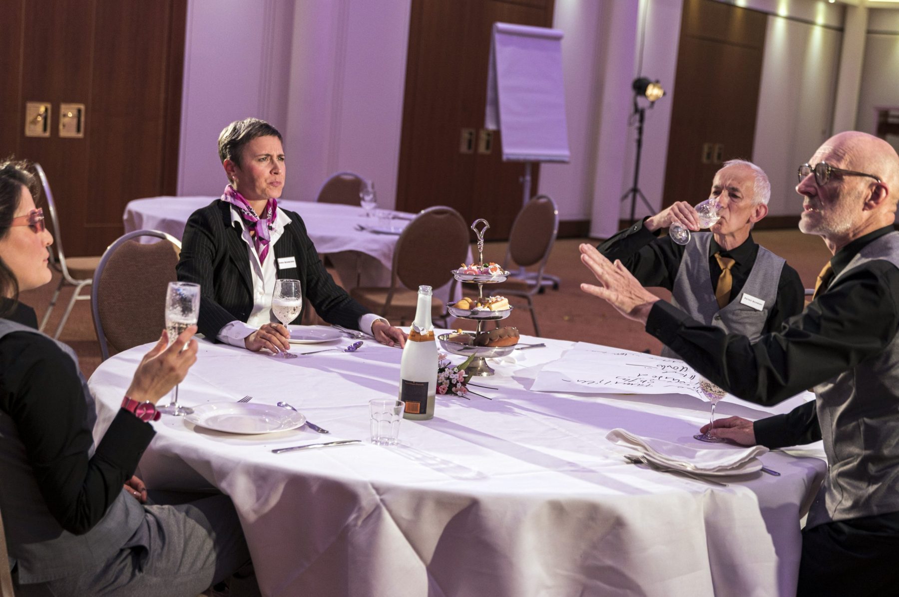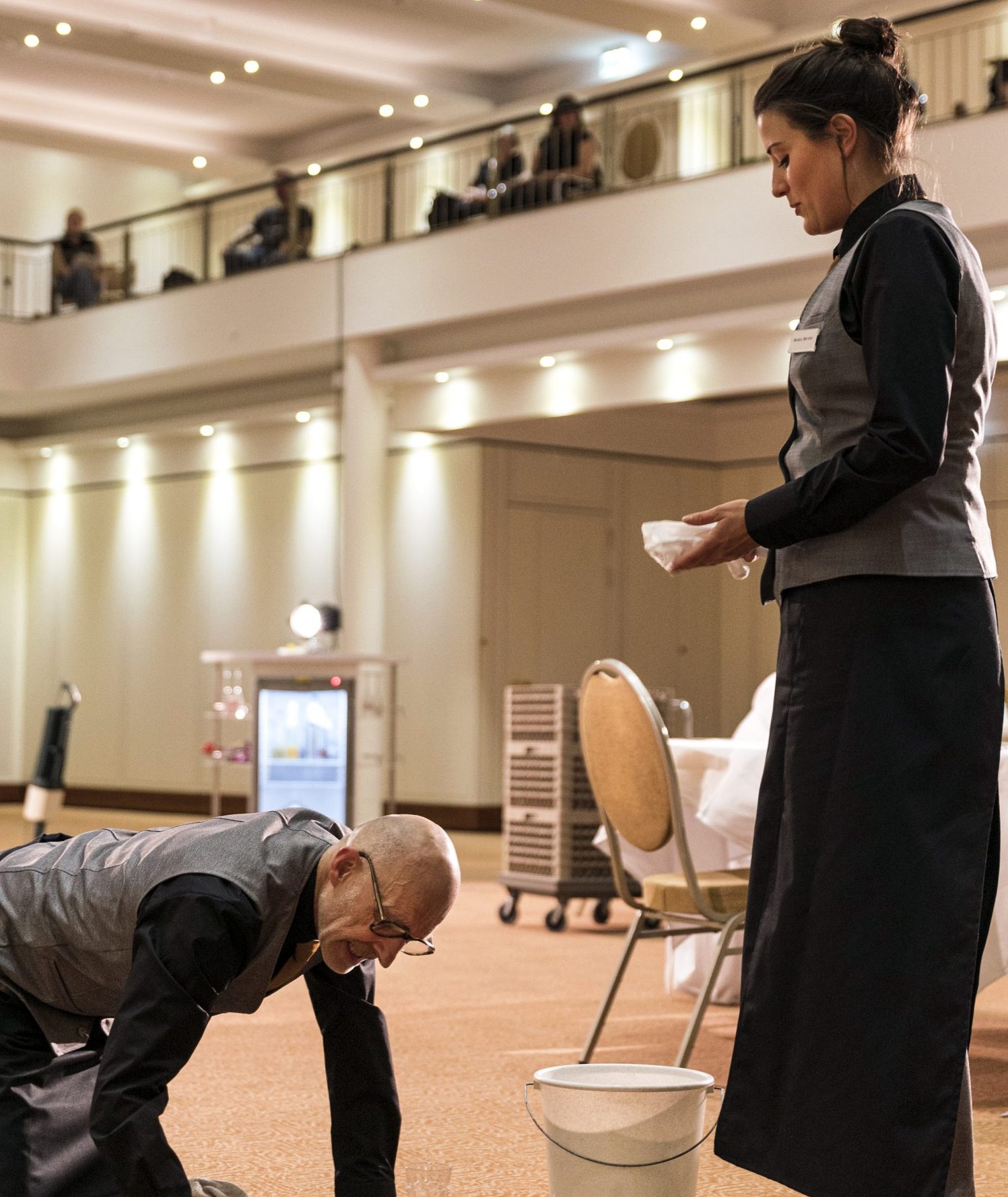 Anfertigung eines runden Lobby Chesterfield Sofas - Anzug des Lottomanns greift Hoteleigenes Teppichmuster wieder auf.